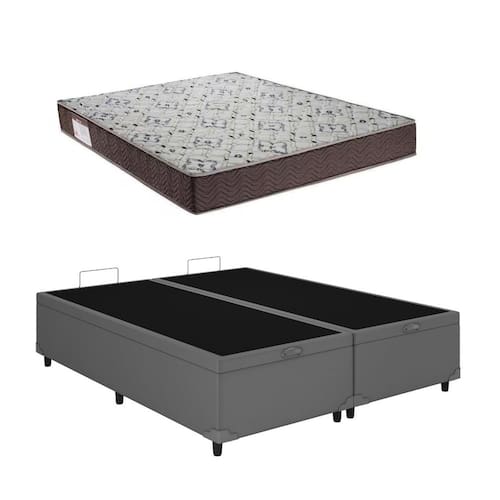 Cama Baú Queen Bipartido Corino Cinza + Colcão Iso 150 D45 158x198x18 - Ortobom