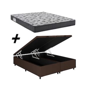Cama Baú Queen Bipartido Corino Marrom+ Colchão Iso 100 D33 158x198x18 - Ortobom