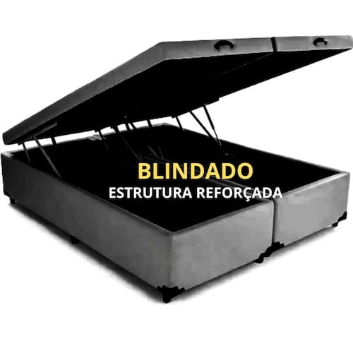 Cama Baú Queen Size Bipartido - Pistão à gás BLINDADO - Cinza