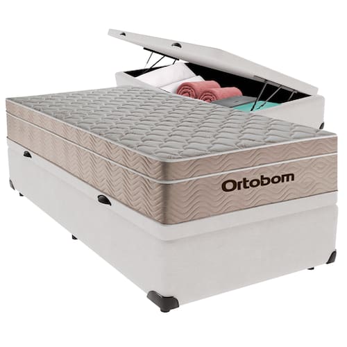 Bem-vindo(a) ao nosso catálogo!Apresentamos a você uma descrição completa sobre esse produto:O Colchão Airtech da Ortobom é a escolha perfeita para você que busca conforto para noites de sono!Produzido com Molas Ensacadas, ele garante a sustentação ideal para a sua coluna enquanto proporciona um conforto Macio.Seu acabamento com Euro Pillow garante um toque macio e noites revigorantes.A Base Baú da KazaMix garante conforto e qualidade. A madeira utilizada na produção da Base Box é proveniente de reflorestamentos, o que garante uma matéria-prima renovável e sustentável. Além disso, a base box é revestida com um tecido de alta qualidade, que proporciona um toque suave e agradável.FICHA TÉCNICA DO COLCHÃOModelo: AirtechMarca: OrtobomTamanho: SolteiroDimensões: 88x188x25 (Largura x Comprimento x Altura)Conforto: MacioSistema: Molas EnsacadasPillow: Euro PillowPeso Máximo recomendado: 120 kg (Por pessoa)Proteções: Antiácaro, antialérgico, antifungo, antimofoGarantia: 12 Meses pelo fabricanteFICHA TÉCNICA DA BASEModelo: BaúMarca: KazaMixCor: BrancoTamanho: SolteiroDimensões: 88x188x37 (Largura x Comprimento x Altura)Altura dos pés: 5Altura Total: 37Peso Máximo recomendado: 150 kg (Por pessoa)Proteções: Antiácaro, antialérgico, antifungo, antimofoGarantia: 3 Meses pelo fabricanteAtenção: Certifique-se de que o produto passa por elevadores, portas, escadas e corredores, pois não realizamos içamentos ou transporte especial. Não fazemos montagem ou desmontagem de produtos. As cores podem sofrer uma pequena alteração de acordo com a tela.