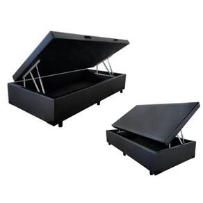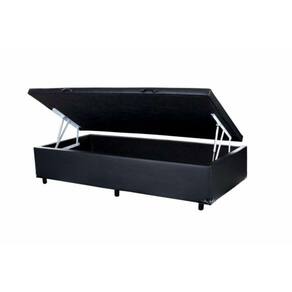 - Acompanha Alça de apoio para o colchão; - Total de 6 pés incluindo - Tampo e Fundo mais reforçados e ainda com chapas de 4mm para maior suporte de peso. - Estrutura Mais reforçada produzida em madeira de reflorestamento tratada. - Estrutura: Em madeira - Tratamento: Antialérgico e Antiácaro - Pistão a Gás: (Maior durabilidade e maior facilidade no manuseio) - Contém 02 puxadores Classe A, para maior facilidade na abertura. - Laterais e frente Blindadas com madeira- Suporte de peso de 150kg de cada lado- Tecido Courino Preto - Profundidade Interna 25 cm.- Altura do Box 37 cm.- Altura dos Pés 6 cm.- Altura total com os pés: 43 cm- Dimensões: 0,88 x 1,88 x 0,37 Garantia: 03 Meses (Garantia Legal) NÃO ACOMPANHA COLCHÃO.