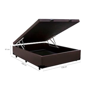Cama Baú Viúva 128 Tecido Sintético Marrom Com Colchão Marrocos - Poliéster - Espuma D33 30cm