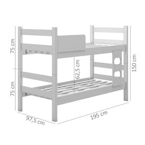 - Altura total: 150 cm- Altura de cada cama: 75 cm- Comprimento: 195 cm
