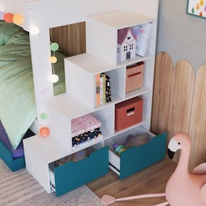 A Cama Beliche Infantil Bicama para Menino e Menina 2,32m com Escada, Nichos e Gavetas com Rodas da Completa Móveis transforma o quarto da criança em um espaço encantador, com escadas laterais que oferecem praticidade na subida e descida dos pequenos, a cama beliche é perfeita para otimizar o espaço. Cada degrau possui nichos integrados, proporcionando solução inteligente para guardar e organizar brinquedos, livros e outros acessórios. Além disso, os dois últimos são acompanhados por gavetas, tornando o produto ainda mais completo. A Cama Beliche da Completa Móveis oferece a flexibilidade de montar a escada lateral tanto do lado direito quanto do lado esquerdo, adaptando-se às necessidades do ambiente.
