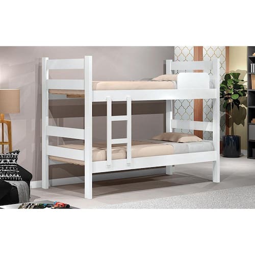 A Beliche da J&A Móveis, possui material da estrutura em MDF, este beliche é ideal para quem procura custo beneficio, um design clean e elegante. Reforçada com estrado de eucaliptos e pinus, com escada de dois degraus e lateral de proteção, garantem resistência e segurança