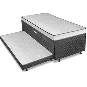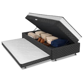 MEDIDA TOTAL DO PRODUTO: [ A ] = 51 cm / 44 cm ( Sem Pés ) [ L ] = 88 cm [ P ] = 188 cm MEDIDA DA CAMA AUXILIAR: [ A ] = 17 cm / 10 cm ( Sem Pés ) [ L ] = 75 cm [ P ] = 168 cm MEDIDA INTERNA DO BAÚ: [ A ] = 15 cm [ L ] = 74 cm [ P ] = 174 cm ALTURA DOS PÉS: 7 cm PESO: 53,8 Kg PESO SUPORTADO: 80Kg MODELO: Cama Bibox com Baú Solteiro Ortopédica com Cama Auxiliar Conjugada 88x188x51cm Gabi MARCA: Somopar REVESTIMENTO SUPERIOR E LATERAL: Acabamento em tecido poliéster de alta qualidade, com bordado nas laterais que adiciona um toque de sofisticação e elegância ao design. REVESTIMENTO INTERNO: Camada de espuma D28 dentro dos padrões ABNT, de alta qualidade, com suporte ortopédico que garante firmeza e conforto na medida certa, suportando até 80 kg por pessoa. EURO PILLOW: Sim, acabamento sofisticado que traz um toque extra de maciez, elegância e conforto premium para suas noites de sono. MATERIAL DA ESTRUTURA: Produzida em madeira de eucalipto de alta resistência, garantindo durabilidade, firmeza e suporte seguro por muito mais tempo. MATERIAL DO PISTÃO: Molas MATERIAL DOS PÉS: PVC QUANTIDADE DE PÉS: 8 DIFERENCIAL: 4 em 1 ITENS INCLUSO: 1 Cama box baú conjugada Solteiro com 1 Cama auxiliar Solteiro GARANTIA: 3 Meses Pelo Fabricante