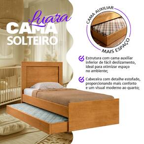 CARACTERÍSTICAS TÉCNICAS Tipo: Bicama solteiro Modelo: Luara Cor: Nature Material: MDF/MDP Tipo de pintura: UV Fosco Possui cama auxiliar: Sim Cabeceira com detalhe em relevo; Suporte anti ruído; Acompanha 2 colchões D23; Cama principal suporta até 90 kg; Colchões suportam até 70 kg;