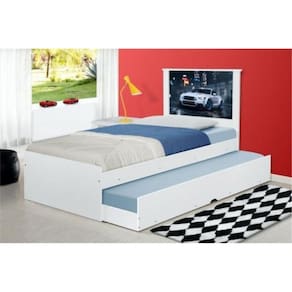 Cama Bibox Solteiro Barcelona CarroPotente Branco com Colchões