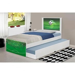 A Bicama Bibox Juvenil Barcelona Adesivada Copa Futebol é belíssima e conta com um design funcional, que ocupa pouco espaço no ambiente. A Coleção Copa Futebol foi desenvolvida por nossos designers oferecendo um visual exclusivo, descontraído e divertido ao ambiente. A cama auxiliar fica embaixo da principal e basta puxá-la por meio das corrediças para começar a fazer dela. É ideal para quartos pequenos e para caso precise de uma cama extra para receber um amigo, ou divida o dormitório com alguém. Feita em MDF e MDP e seu acabamento é feito com pintura UV brilhante tornando-a um produto resistente e com aspecto de novo por muito mais tempo. É uma excelente escolha para acomodar colchões de solteiro na medida de 188 cm x 88 cm de largura.
