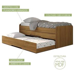 Material do puxador: Usinado nas gavetas e na cama auxiliar;