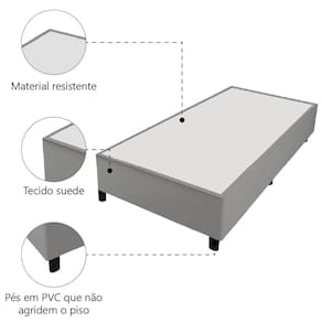 Cama Box 0,96m Com 38cm De Altura Prince Cinza Cinza O Box é a escolha ideal para quem busca praticidade, beleza e modernidade em um só produto. Revestido com tecido reforçado e nobre e acabamento sofisticado, ele une estilo e funcionalidade. Sua estrutura é fabricada com madeira de eucalipto e pinus, materiais reconhecidos pela resistência e durabilidade. Além de garantir um visual mais elegante ao ambiente, o Box otimiza o espaço do seu quarto, tornando-o mais organizado e aconchegante. Fácil de limpar e acompanha um jogo de pés em PVC, é a combinação perfeita entre praticidade e bom gosto. MEDIDAS: [ A ] = 38 cm / 26 cm (sem pés) [ L ] = 96 cm [ P ] = 203 cm PESO: 22kg ALTURA DOS PÉS: 12 cm SUPORTA ATÉ: 150kg MODELO: Cama Box 0,96m com 38cm de Altura MARCA: Prince MATERIAL DA ESTRUTURA: Eucalipto e Pinus PÉS: 6 MATERIAL DOS PÉS: PVC GARANTIA: 03 meses ITENS INCLUSOS:1 Box de 0,96m