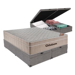 Cama + Box Airtech Colchão Ortobom Queen Com Baú Bege Springpocket Cor:cinza