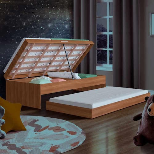 Dimensões da Cama Auxiliar: Largura 92 cm; Profundidade 190 cm; Altura 14 cm.