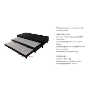 Cama Box Base c/2 Auxiliares Solteiro Universal Rústico Bordado Black (88x188x32) - Paropas