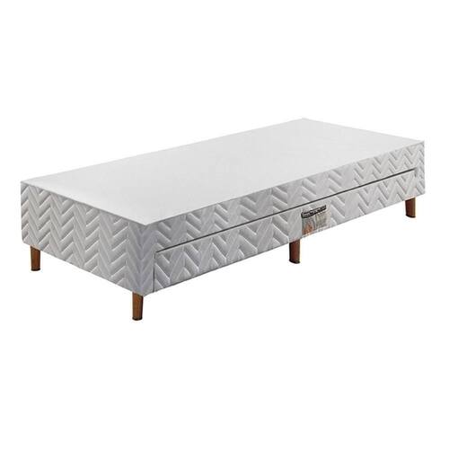 Cama Box Base c/ Auxiliar Solteiro Universal Tecido Bordado White (88x188x30) - Paropas