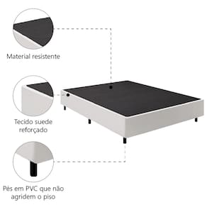 O quarto dos sonhos começa com uma base box de design sofisticado e elegante! Com 1,58m de largura, ela transforma o ambiente em um espaço ainda mais aconchegante e moderno. Estruturada com materiais de alta qualidade, é ideal para o uso diário, oferecendo resistência, durabilidade e conforto. O modelo é desmontável, facilitando o transporte por escadas e elevadores - perfeito para quem mora em apartamentos -. Revestida com tecido suede de toque macio e equipada com pés resistentes que não danificam o piso, essa base box é a escolha certa para aliar praticidade e estilo.