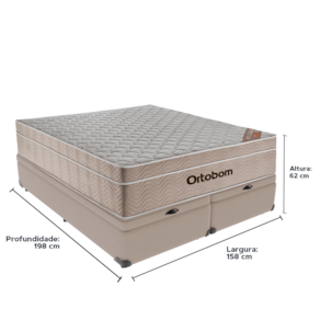 O conforto que sua casa precisa e a qualidade que você merece está na Kazamix!Durma com a Qualidade e Conforto que Você Merece!O Colchão Airtech SpringMolas Ensacadas Ortobom é a escolha perfeita para quem busca conforto e suporte. Equipado com um sistema de molas ensacadas, ele oferece suporte individualizado, garantindo o alinhamento correto da coluna e reduzindo os impactos dos movimentos durante o sono. O Euro Pillow proporciona uma camada extra de maciez, garantindo um sono ainda mais revigorante.Seu revestimento em tecido de malha e matelassê, junto com a lateral em suede, proporcionam um visual sofisticado, elevando ainda mais a estética do seu dormitório e agregando elegância ao ambiente.Além disso, o colchão conta com proteção antiácaro e antialérgico, criando um ambiente de sono mais saudável e ideal para quem busca bem-estar. Produzido com materiais de alta qualidade e a confiabilidade da Ortobom, líder em tecnologia e durabilidade, ele é feito para durar, oferecendo anos de conforto e suporte.Modelo: Airtech SpringMolas EnsacadasMarca: OrtobomTamanho: QueenDimensões: 158x198X25 (Largura x Comprimento x Altura)Conforto: MacioSistema: Molas EnsacadasPillow: Euro PillowPeso Máximo recomendado: 120 kg (Por pessoa)Proteções: Antiácaro, antialérgico, antifungo, antimofoGarantia: 1 ano pelo FabricanteO conforto que sua casa precisa e a qualidade que você merece está na KazamixAproveite cada metro quadrado do seu dormitório com a Cama Box Baú!Projetada com madeira de reflorestamento reforçada, a Cama Box Baú é a escolha ideal para quem busca otimização de espaço e praticidade na organização do dia a dia.Com um baú generoso, ela oferece a solução perfeita para armazenar travesseiros extras, cobertores, malas e muito mais. Além disso, sua estrutura robusta suporta até 150 kg por pessoa, garantindo a sustentação ideal para o seu colchão e prolongando sua vida útil.O pistão a gás robusto proporciona uma abertura suave e segura do baú, oferecendo praticidade e resistência no uso diário. Para completar, o acabamento de alta qualidade combina perfeitamente com qualquer estilo de decoração, agregando elegância e versatilidade ao seu ambiente.Não perca tempo! Adquira agora mesmo sua Cama Box Baú e diga adeus à falta de espaço e desorganização.Marca: KazaMixModelo: BaúCor do Box: BegeTamanho: QueenDimensões: 158X198X37 (Largura x Comprimento x Altura) Estrutura: MadeiraPeso máximo recomendado: 150 kg (Por Pessoa)Altura do Box: 32 cm Altura dos Pés: 5 cm Altura total: 37 cm Garantia: 03 mesesSelo Ecologicamente CorretoAtenção: Antes de finalizar sua compra, certifique-se de que as dimensões do produto sejam adequadas para serem transportadas pelos elevadores, portas, escadas e corredores de sua residência. Ressaltamos que não nos responsabilizamos pelo transporte do produto por meios específicos, como escadas, guinchos ou içamentos.