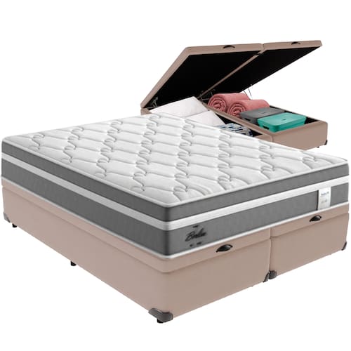 Cama Box Baú Bege e Colchão Berlim Molas Ensacadas Queen Probel