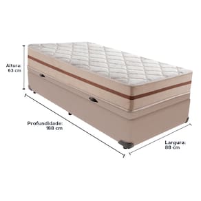 Cama Box Baú Bege e Colchão Classic 26 cm Molas ensacadas Solteiro Anjos