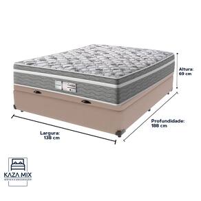 O conforto que sua casa precisa e a qualidade que você merece está na Kazamix!O Colchão Evolution é a escolha ideal para quem busca conforto, suporte e qualidade em cada noite de sono. Com Molas Ensacadas que oferecem um suporte individualizado, e um Pillow Euro que proporciona uma camada extra de suavidade, esse colchão transforma seu descanso em uma experiência de luxo.Com espuma D28 de alta densidade, o Evolution garante firmeza e conforto duradouros. Seu acabamento em poliéster diamante e bordado em matelassê trazem um toque de elegância e sofisticação ao seu ambiente.Além disso, o colchão é tratado com propriedades antiácaro e antialérgico, garantindo um sono mais saudável e seguro.Invista no seu bem-estar com o colchão Evolution, e experimente a combinação perfeita de conforto e durabilidade!Modelo: EvolutionMarca: ProbelTamanho: CasalDimensões: 138x188X32 (Largura x Comprimento x Altura)Conforto: IntermediárioSistema: Molas EnsacadasPillow: Euro PillowPeso Máximo recomendado: 110 kg (Por pessoa)Proteções: Antiácaro, antialérgico, antifungo, antimofoGarantia: 1 ano pelo FabricanteO conforto que sua casa precisa e a qualidade que você merece está na KazamixAproveite cada metro quadrado do seu dormitório com a Cama Box Baú!Projetada com madeira de reflorestamento reforçada, a Cama Box Baú é a escolha ideal para quem busca otimização de espaço e praticidade na organização do dia a dia.Com um baú generoso, ela oferece a solução perfeita para armazenar travesseiros extras, cobertores, malas e muito mais. Além disso, sua estrutura robusta suporta até 150 kg por pessoa, garantindo a sustentação ideal para o seu colchão e prolongando sua vida útil.O pistão a gás robusto proporciona uma abertura suave e segura do baú, oferecendo praticidade e resistência no uso diário. Para completar, o acabamento de alta qualidade combina perfeitamente com qualquer estilo de decoração, agregando elegância e versatilidade ao seu ambiente.Não perca tempo! Adquira agora mesmo sua Cama Box Baú e diga adeus à falta de espaço e desorganização.Marca: KazaMixModelo: BaúCor do Box: BegeTamanho: CasalDimensões: 138X188X37 (Largura x Comprimento x Altura) Estrutura: MadeiraPeso máximo recomendado: 150 kg (Por Pessoa)Altura do Box: 32 cm Altura dos Pés: 5 cm Altura total: 37 cm Garantia: 03 mesesSelo Ecologicamente CorretoAtenção: Antes de finalizar sua compra, certifique-se de que as dimensões do produto sejam adequadas para serem transportadas pelos elevadores, portas, escadas e corredores de sua residência. Ressaltamos que não nos responsabilizamos pelo transporte do produto por meios específicos, como escadas, guinchos ou içamentos.