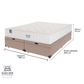 Bem-vindo(a) ao nosso catálogo! Apresentamos a você uma descrição completa sobre esse produto: A marca SealyEntre as personalidades que usam e usaram os colchões da marca Sealy estão a cantora Adele, Rainha Elizabeth II, a apresentadora Ellen DeGeneres e o jogador de basquete LeBron James. Atendendo também os hotéis da Disney, Copacabana Palace, Hard Rock Hotels e outros. Referência na fabricação de colchões de alta qualidade, a empresa foi fundada em 1881. Investindo em tecnologia de ponta e materiais premium para produzir produtos duráveis e confortáveis, é reconhecida por diversos consumidores famosos em todo o mundo. Modelo: MiamiNível de Conforto: FirmeSuporte de peso: 240kg (120kg por pessoa)Pillow Top: EuroPillowMolas: Ensacadas Altura: 26cmO sistema Polyframe reforça as bordas do colchão com espuma de alto suporte. Essa estrutura envolve toda a lateral do colchão. Por conseguinte, aumenta a área útil de sono e proporciona firmeza adicional nas laterais. Assim, garante um uso homogêneo de toda a superfície do colchão. Ademais, a Manta Acrílica protege as molas e a espuma. Este material aumenta a firmeza e estabilidade do colchão, contribuindo para sua durabilidade ao evitar o desgaste prematuro. - Proporciona uma área de sono maior e mais firme. - Previne o desgaste prematuro das molas e da espuma. - Garante um uso homogêneo da superfície do colchão. Os colchões Sealy são fabricados segundo os altos padrões dos laboratórios americanos, líderes em inovação. Além disso, esta tecnologia garante uma zona de conforto ampliada, assegurando a qualidade excepcional do produto. Além disso, o EuroPillow adiciona uma camada de maciez extra. Este elemento atua como um travesseiro gigante no topo do colchão, proporcionando uma aparência de luxo e conforto adicional. Proteção Antiácaro e AntifungoOs colchões Sealy possuem tratamento especial contra ácaros, fungos e outras bactérias. Esse tratamento é vital, especialmente em climas tropicais onde a umidade pode facilitar o crescimento de ácaros e fungos. Portanto, ele previne crises alérgicas respiratórias comuns nesses ambientes. O revestimento inferior do colchão é antiderrapante, garantindo que ele permaneça estável mesmo com movimentos intensos. Além disso, o tecido Suede na faixa lateral dá um toque macio e confere um visual elegante ao colchão. Este colchão possui molas ensacadas que oferecem suporte individualizado. Cada mola responde de forma independente, adaptando-se ao peso de cada usuário sem transferir movimento. Portanto, ele é ideal para garantir uma boa noite de sono a todos os biótipos. Além de tudo, esse produto acompanha a Cama Box com Baú da Kaza Mix e assim se torna um conjunto perfeito para o seu quarto! Marca: Kaza MixCor do Baú: BegeTamanho: KingMaterial dos pés: MadeiraEstrutura: MadeiraPeso máximo recomendado: Até 150kg de cada ladoAbertura: Pistão a gásLargura: 193cmComprimento: 203cmAltura total: 42cmAltura interna Baú: 27cmAltura dos pés: 6cmGarantia: 03 mesesSelo Ecologicamente CorretoAtenção: - Antes de finalizar sua compra, recomendamos que verifique se as dimensões do produto são adequadas para serem transportadas pelos elevadores, portas, escadas e corredores de sua residência. Ressaltamos que não nos responsabilizamos pelo transporte do produto por meios específicos, como escadas, guinchos ou içamentos. - É possível que hajam leves variações de cor de acordo com o dispositivo que está sendo utilizado como smartphones, computadores, monitores e outros.