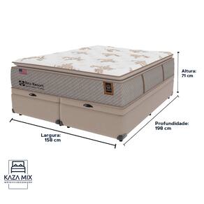 Bem-vindo(a) ao nosso catálogo! Apresentamos a você uma descrição completa sobre esse produto: A marca SealyEntre as personalidades que usam e usaram os colchões da marca Sealy estão a cantora Adele, Rainha Elizabeth II, a apresentadora Ellen DeGeneres e o jogador de basquete LeBron James. Atendendo também os hotéis da Disney, Copacabana Palace, Hard Rock Hotels e outros. Referência na fabricação de colchões de alta qualidade, a empresa foi fundada em 1881. Investindo em tecnologia de ponta e materiais premium para produzir produtos duráveis e confortáveis, é reconhecida por diversos consumidores famosos em todo o mundo. Modelo: Ritz ResortNível de Conforto: Extra MacioSuporte de peso: 300 quilos (150kg por pessoa)Molas: Dual Support SystemPillow: Pastel com High TechEspuma: Espuma D28 Soft GelAltura: 34cmTecido: Malha Coleção Flor de Lis 380gO Colchão Ritz Resort Sealy: Molas Ensacadas com 34cm, não apenas representa o ápice em conforto, mas também incorpora tecnologia avançada para o descanso noturno. As molas ensacadas individualmente, conhecidas pelo sistema DSS (Dual Support System), oferecem suporte independente que se ajusta perfeitamente ao corpo. Além disso, elas minimizam a transferência de movimento entre parceiros durante a noite, sendo ideal para casais. Da mesma forma, a espuma Soft Gel fornece uma superfície de descanso acolhedora e termorreguladora, adaptando-se à temperatura do corpo e proporcionando conforto em todas as estações. Combinando tecnologia de ponta, materiais de alta qualidade e proteções integradas, o Colchão Ritz Resort Sealy surge como a escolha perfeita para quem busca uma boa noite de sono e uma experiência de descanso luxuosa e rejuvenescedora. Além de tudo, esse produto acompanha a Cama Box com Baú da Kaza Mix e assim se torna um conjunto perfeito para o seu quarto! Marca: Kaza MixCor do Baú: BegeTamanho: QueenMaterial dos pés: MadeiraEstrutura: MadeiraPeso máximo recomendado: Até 150kg de cada ladoAbertura: Pistão a gásLargura: 158cmComprimento: 198cmAltura total: 42cmAltura interna Baú: 27cmAltura dos pés: 6cmGarantia: 03 mesesSelo Ecologicamente CorretoAtenção: - Antes de finalizar sua compra, recomendamos que verifique se as dimensões do produto são adequadas para serem transportadas pelos elevadores, portas, escadas e corredores de sua residência. Ressaltamos que não nos responsabilizamos pelo transporte do produto por meios específicos, como escadas, guinchos ou içamentos. - É possível que hajam leves variações de cor de acordo com o dispositivo que está sendo utilizado como smartphones, computadores, monitores e outros.