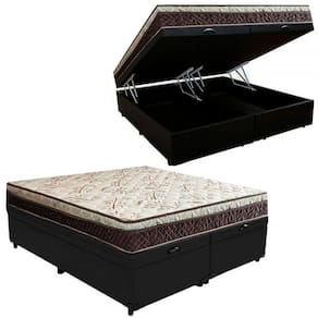 Cama Box Baú Bipartido Casal Suede + Colchão Casal Espuma Extra Firme D33 Elegance Ortopédico 64x138x188 Preto