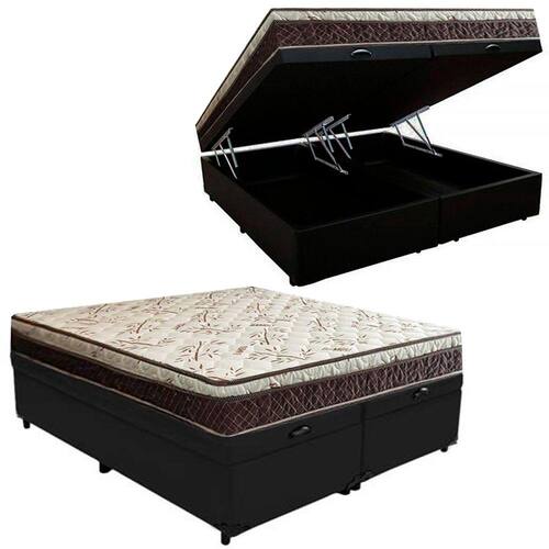 Cama Box Baú Bipartido Casal Suede + Colchão Casal Espuma Extra Firme D33 Elegance Ortopédico 64x138x188 - Preto