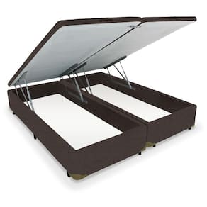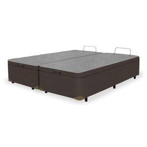 Cama Box Baú Bipartido QUEEN Linho Tabaco Canvas - 158x198 - Branco