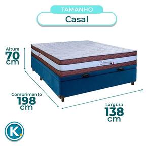 Modelo: Elite Marca: Nature Tamanho: Casal Tecido: Veludo Largura: 138cm Comprimento: 188cm Altura: 35cm Altura dos Pés: 7cm Material dos Pés: Madeira Suporte de Peso: 150Kg Peso: 35Kg Garantia: 3 Meses