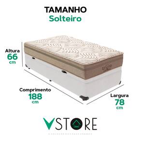 A tecnologia que a sua casa merece está na V-Store! O Conjunto Colchão Los Angeles + Base Box Baú Bravus da V-Store oferece conforto e funcionalidade. O colchão, com molas ensacadas e sistema EPS, garante suporte ideal, conforto térmico e proteção antiácaro. A base box, com amplo espaço de armazenamento, é feita de madeira reflorestada e revestida com tecido resistente, proporcionando praticidade e sofisticação ao seu quarto.Característica Do Colchão: Modelo: Los AngelesMarca: V-StoreTamanho: SolteiroDimensões: 78x28x188 (Largura x Altura x Comprimento)Conforto: MédioSistema: Molas EnsacadasPillow: Não se aplicaPeso Máximo recomendado: 150 kg (Por pessoa)Proteções: Antiácaro, antialérgico, antifungo, antimofoGarantia: 12 Meses (Espuma) / 10 anos ( Conjunto de Molas Ensacadas)Característica Da Base: Marca: V-StoreModelo: BravusCor do Box: BrancoTamanho: SolteiroDimensões: 78x44x188 (Largura x Altura x Comprimento)Estrutura: MadeiraPeso máximo recomendado: 150 kg (Por Pessoa)Altura do Box: 38 cmAltura dos Pés: 6 cmAltura total: 44 cmGarantia: 12 Meses (Estrutura) / 3 meses (Tecido)Selo Ecologicamente CorretoAtenção:- Antes de finalizar sua compra, recomendamos que verifique se as dimensões do produto são adequadas para serem transportadas pelos elevadores, portas, escadas e corredores de sua residência. Ressaltamos que não nos responsabilizamos pelo transporte do produto por meios específicos, como escadas, guinchos ou içamentos.- É possível que hajam leves variações de cor de acordo com o dispositivo que está sendo utilizado como smartphones, computadores, monitores e outros.