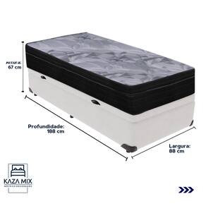 O conforto que sua casa precisa e a qualidade que você merece está na Kazamix!Redefina suas noites de sono com o Colchão Pampa Molas Ensacadas, projetado para oferecer máximo conforto e suporte. Suas molas ensacadas individualmente garantem estabilidade, minimizando vibrações e proporcionando um descanso tranquilo. O Ortopillow com tecido em poliéster de alta resistência e bordado matelassê acrescenta uma camada extra de maciez e conforto. Com tratamento antiácaro, antifungo e tecnologia No Turn, é ideal para quem busca praticidade e um ambiente de sono mais saudável. Este colchão combina qualidade e durabilidade para oferecer uma experiência de descanso incomparável.Modelo: Pampa Marca: OrtobomTamanho: SolteiroDimensões: 88x188X24 (Largura x Comprimento x Altura)Conforto: MacioSistema: Molas ensacadas Pillow: Euro PillowPeso Máximo recomendado: 120 kg (Por pessoa)Proteções: Antiácaro, antialérgico, antifungo, antimofoGarantia: 1 ano pelo FabricanteO conforto que sua casa precisa e a qualidade que você merece está na KazamixAproveite cada metro quadrado do seu dormitório com a Cama Box Baú!Projetada com madeira de reflorestamento reforçada, a Cama Box Baú é a escolha ideal para quem busca otimização de espaço e praticidade na organização do dia a dia.Com um baú generoso, ela oferece a solução perfeita para armazenar travesseiros extras, cobertores, malas e muito mais. Além disso, sua estrutura robusta suporta até 150 kg por pessoa, garantindo a sustentação ideal para o seu colchão e prolongando sua vida útil.O pistão a gás robusto proporciona uma abertura suave e segura do baú, oferecendo praticidade e resistência no uso diário. Para completar, o acabamento de alta qualidade combina perfeitamente com qualquer estilo de decoração, agregando elegância e versatilidade ao seu ambiente.Não perca tempo! Adquira agora mesmo sua Cama Box Baú e diga adeus à falta de espaço e desorganização.Marca: KazaMixModelo: BaúCor do Box: BrancoTamanho: SolteiroDimensões: 88X188X37 (Largura x Comprimento x Altura) Estrutura: MadeiraPeso máximo recomendado: 150 kg (Por Pessoa)Altura do Box: 32 cm Altura dos Pés: 5 cm Altura total: 37 cm Garantia: 03 mesesSelo Ecologicamente CorretoAtenção: Antes de finalizar sua compra, certifique-se de que as dimensões do produto sejam adequadas para serem transportadas pelos elevadores, portas, escadas e corredores de sua residência. Ressaltamos que não nos responsabilizamos pelo transporte do produto por meios específicos, como escadas, guinchos ou içamentos.