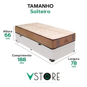 A tecnologia que a sua casa merece está na V-Store! O Conjunto Colchão Madrid + Base Box Baú Bravus da V-Store oferece o equilíbrio perfeito entre conforto, praticidade e elegância. O colchão, com molas ensacadas e sistema EPS, garante noites de sono tranquilas, com suporte ideal e proteção contra ácaros e alergias. Já a base box baú, feita com madeira reflorestada, conta com um design sofisticado, amplo espaço de armazenamento e funcionalidade adicional para guardar travesseiros, malas e cobertores. Com capacidade para até 150 kg por pessoa, esse conjunto é ideal para quem busca qualidade e praticidade.Característica Do Colchão: Modelo: MadridMarca: V-StoreTamanho: SolteiroDimensões: 78x28x188 (Largura x Altura x Comprimento)Conforto: MédioSistema: Molas EnsacadasPillow: Não se aplicaPeso Máximo recomendado: 150 kg (Por pessoa)Proteções: Antiácaro, antialérgico, antifungo, antimofoGarantia: 12 Meses (Espuma) / 10 anos ( Conjunto de Molas Ensacadas)Característica Da Base: Marca: V-StoreModelo: BravusCor do Box: BrancoTamanho: SolteiroDimensões: 78x44x188 (Largura x Altura x Comprimento)Estrutura: MadeiraPeso máximo recomendado: 150 kg (Por Pessoa)Altura do Box: 38 cmAltura dos Pés: 6 cmAltura total: 44 cmGarantia: 12 Meses (Estrutura) / 3 meses (Tecido)Selo Ecologicamente CorretoAtenção:- Antes de finalizar sua compra, recomendamos que verifique se as dimensões do produto são adequadas para serem transportadas pelos elevadores, portas, escadas e corredores de sua residência. Ressaltamos que não nos responsabilizamos pelo transporte do produto por meios específicos, como escadas, guinchos ou içamentos.- É possível que hajam leves variações de cor de acordo com o dispositivo que está sendo utilizado como smartphones, computadores, monitores e outros.