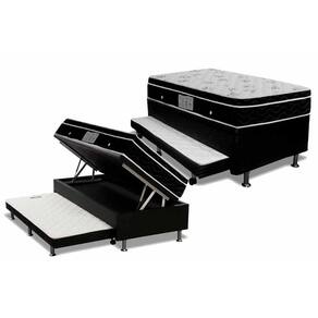 Cama Box Baú c/Auxiliar Solteiro: Colchão Molas Ortobom Nanolastic Physical + Base CRC Courano Black(88x188)