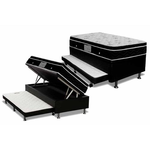 Cama Baú Vaz Exclusivo p/uso c/Cama Aux Solteiro Courano Nero Black (88x188x37) - Ortobom