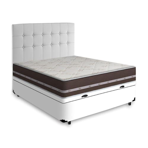 A base baú é confeccionada com madeira de reflorestamento com tratamentos anticupim e antimofo, o seu diferencial é o compartimento interno garantindo um novo espaço em seu quarto, agregando valor e sofisticação ao ambiente. O colchão de molas de fios contínuos Classic Superlastic proporciona conforto e maciez. O seu bordado em Matelassê te dá alívio extra na hora de deitar.