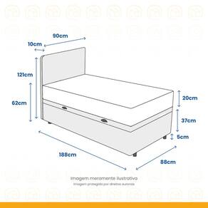 A base baú é confeccionada com madeira de reflorestamento com tratamentos anticupim e antimofo, o seu diferencial é o compartimento interno garantindo um novo espaço em seu quarto, agregando valor e sofisticação ao ambiente. O colchão de molas de fios contínuos Classic Superlastic proporciona conforto e maciez. O seu bordado em Matelassê te dá alívio extra na hora de deitar.