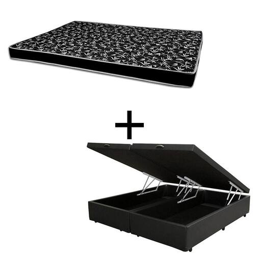 Cama Box Baú Casal 138 Bipartido Tecido Sintético Preto Com Colchão Hamburgo Bello Box - 100% Espuma - D28 Preto 55x138x188