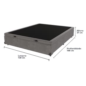O conforto que sua casa precisa e a qualidade que você merece está na KazamixAproveite cada metro quadrado do seu dormitório com a Cama Box Baú!Projetada com madeira de reflorestamento reforçada, a Cama Box Baú é a escolha ideal para quem busca otimização de espaço e praticidade na organização do dia a dia.Com um baú generoso, ela oferece a solução perfeita para armazenar travesseiros extras, cobertores, malas e muito mais. Além disso, sua estrutura robusta suporta até 150 kg por pessoa, garantindo a sustentação ideal para o seu colchão e prolongando sua vida útil.O pistão a gás robusto proporciona uma abertura suave e segura do baú, oferecendo praticidade e resistência no uso diário. Para completar, o acabamento de alta qualidade combina perfeitamente com qualquer estilo de decoração, agregando elegância e versatilidade ao seu ambiente.Não perca tempo! Adquira agora mesmo sua Cama Box Baú e diga adeus à falta de espaço e desorganização.Marca: KazaMixModelo: BaúCor do Box: CinzaTamanho: CasalDimensões: 138X188X37 (Largura x Comprimento x Altura) Estrutura: MadeiraPeso máximo recomendado: 150 kg (Por Pessoa)Altura do Box: 32 cm Altura dos Pés: 5 cm Altura total: 37 cm Garantia: 03 mesesSelo Ecologicamente CorretoAtenção: Antes de finalizar sua compra, certifique-se de que as dimensões do produto sejam adequadas para serem transportadas pelos elevadores, portas, escadas e corredores de sua residência. Ressaltamos que não nos responsabilizamos pelo transporte do produto por meios específicos, como escadas, guinchos ou içamentos. Marca: KazaMix