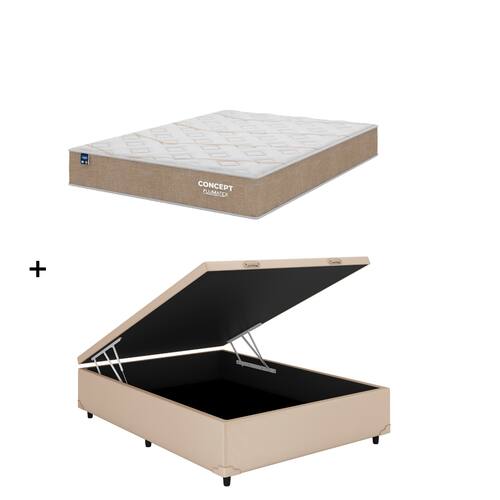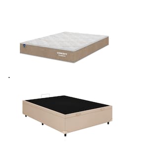 Corino Bege, Madeira 100% reflorestamento, Tecido sintético, Malha Complete 160g/m², Jaquard Turkey, Espuma D28, EPS.Vendido e entregue por AMERICAS