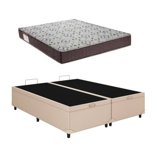 Cama Box Baú Casal Bipartido Corino Bege + Colcão Iso 150 D45 138x188x18 - Ortobom