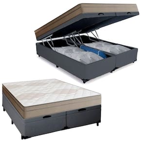 Cama Box Baú Casal Bipartido Sintético + Colchão De Molas Ensacadas Portobel Ipanema - 138x188x66cm Cinza