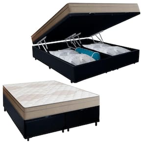 Cama Box Baú Casal Bipartido Sintético + Colchão De Molas Ensacadas Portobel Ipanema 138x188x66cm Preto