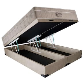 Cama Box Baú Casal Sintético Bipartido Bege + Colchão Ortobom Airtech Molas Ensacadas 65x138x188