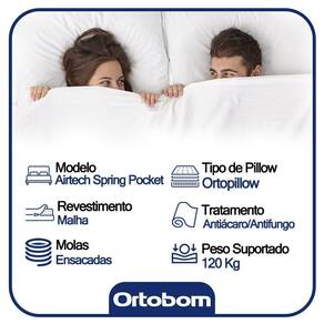 O Colchão Casal Ortobom Airtech Molas Ensacadas oferece uma experiência de sono excepcionalmente confortável e suporte personalizado para noites de descanso revitalizante. Contando com molas ensacadas e espuma, ele é a opção perfeita para acomodar bem seu corpo e deixar você bem aconchegado, levando maior bem-estar às suas horas de descanso.
