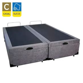 Cama Box Baú Casal Bipartido Suede Cama Cinza 138x188x45cm