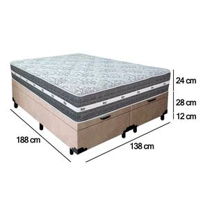 Cama Box Baú Casal Bipartido Suede + Colchão Black Graphite Molas Ensacadas 138x188x64cm Bege