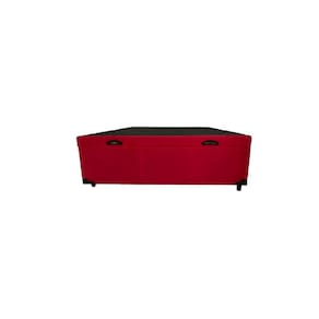 Estrutura Externa: Suede Vermelho - Cor Predominante: Bege - Material da estrutura: Madeira - Lateral da estrutura: Blindadas (fechadas) com chapas de madeira com 4mm - Altura do baú: 38 cm - Altura total do baú com pés: 44 cm - Largura: 138 cm - Comprimento: 188 cm - Profundidade Interna: 27 cm - Peso: 47 Kg - Altura dos Pés: 6 cm - Acabamento dos Pés: Acabamento em madeira na cor preto - Pistão a Gás: Sim, na cor preta - Tratamento Antiácaro: Sim - Tratamento Antialérgico: Sim - Suporta até (kg): 150 Kg