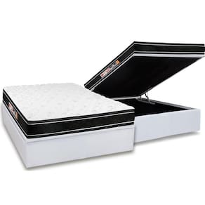 Abaixo segue os produtos do KIT: Conjunto Box Baú Casal: Colchão Espuma Castor D33 Black e White Air + Base CRC Courano White (138x188)
