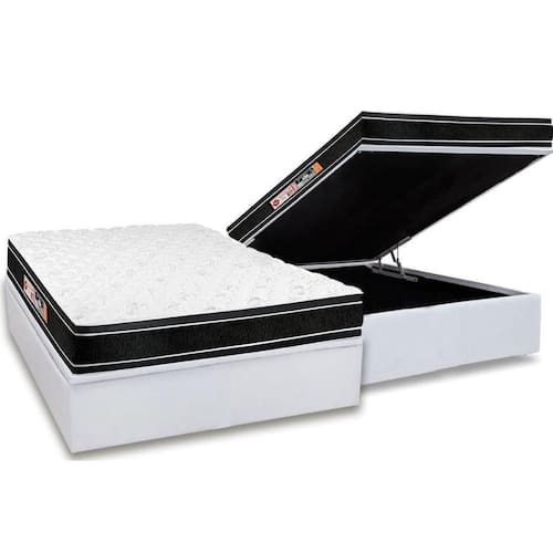 Conjunto Box Baú Casal: Colchão Espuma Castor D33 Black e White Air + Base CRC Courano White (138x188)